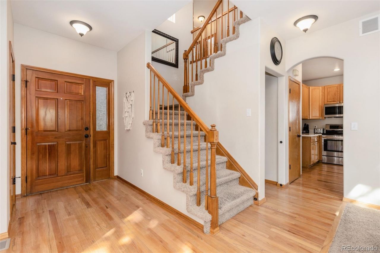 Terrific two-story 3-bedroom, 3-bathroom + loft home sits on a large corner lot in the desirable Clarke Farms community of Parker! The gorgeous, mature tree-filled corner lot offers amazing curb appeal and adds wonderful privacy. Inside, fresh paint in the kitchen, primary bedroom with ensuite bath, and two secondary bedrooms brings a clean and updated feel throughout. The open kitchen with stainless appliances flows comfortably into the main living and entertaining area, creating an inviting space for gatherings or everyday living. A new barn door in the primary bedroom adds both style and privacy to the ensuite bath, featuring a luxurious 5-piece layout and a walk-in closet.Step outside to the covered back deck, complete with a ceiling fan and lights, its the perfect spot to host friends or unwind while enjoying the fully fenced backyard. And dont miss the newer hot tub, offering the ultimate way to relax after a long day. Upstairs, two additional bedrooms and a full bathroom with beautiful natural light from the skylight provide a comfortable space for family or guests. The large loft offers flexible space for a home office, workout room, playroom, or whatever fits your lifestyle. The partial rough-finish basement is a great bonus area and includes a large storage closet.Enjoy peace of mind with a new roof, new exterior paint, and new gutters. The oversized 2-car garage includes a bonus workshop area, ideal for hobbies, projects, or extra storage. Living in Clarke Farms means youre part of a vibrant community with incredible amenities like a neighborhood pool, tennis courts, parks, playgrounds, and easy access to scenic trails like the Cherry Creek Regional Trail for hiking and biking. Plus, youre just minutes from shopping, restaurants, parks, the Pace Center, and Downtown Parker. A wonderful blend of comfort, updates, curb appeal, and location...Make this excellent Parker home yours!
