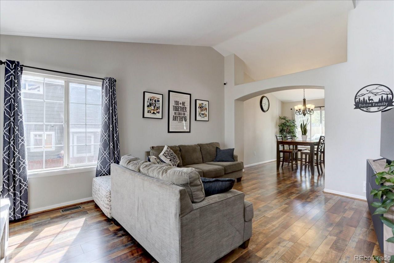 Warm and inviting two-story home located in the highly desirable Villages at Parker / Canterberry community. Situated on a beautifully landscaped oversized lot, this home offers exceptional curb appeal with a welcoming front porch and a private, fully fenced backyard designed for entertaining. Enjoy outdoor living on the spacious covered deck featuring built-in seating, perfect for gatherings with family and friends.Inside, the thoughtfully designed floor plan offers both comfort and functionality. The updated kitchen features slab granite countertops, and newer stainless steel stove and microwave, and opens seamlessly to the cozy family room with a cozy gas fireplace, creating the ideal space for everyday living and entertaining. The formal living and dining areas showcase vaulted ceilings and newer flooring throughout the main level.Upstairs, the spacious primary suite offers a walk-in closet and a luxurious 5-piece bath. Two additional bedrooms and an updated full bathroom complete the upper level. A versatile fourth bedroom or home office with elegant French doors is conveniently located on the main floor, along with an updated half bath just across the hall.The basement has already been framed and is ready for finishing, offering an incredible opportunity to easily create additional living space, a home gym, media room, or guest suite tailored to your needs. Heating was replaced in 2021 and the A/C in 2022, giving buyers added peace of mind.