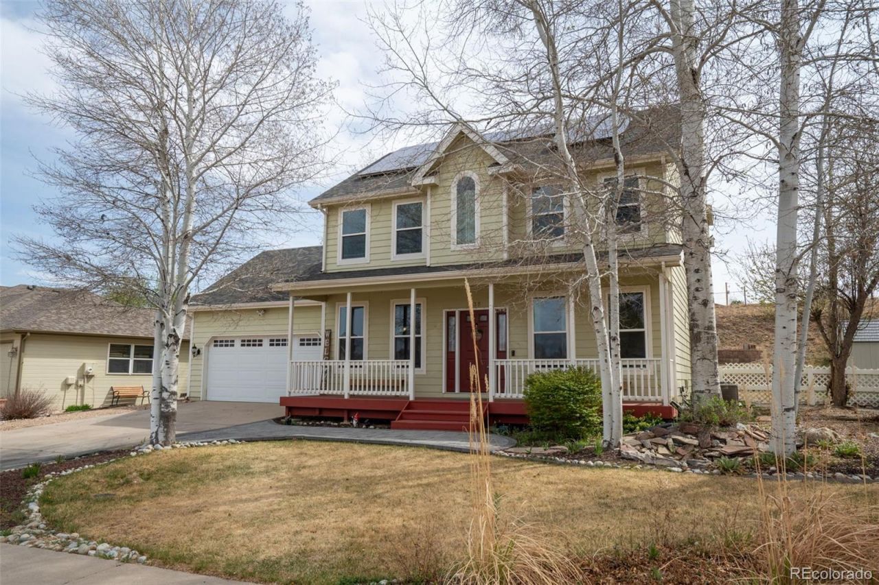 This 4 bedroom, 3 bath home has curb-appeal for days and absolutely oozes charm and personality! ALL the boxes get checked - the solar panels are owned, the upgraded kitchen features a functional layout, slab granite, and natural wood cabinets. The family room boasts warm hardwood flooring and a gas fireplace. The beautiful sun room is perfect for your cup of morning coffee. A spacious primary features a luxurious en-suite with jetted soaking tub and a 2nd cozy fireplace. Two additional bedrooms and full bath round out the upper level. The finished basement provides a large flex space for home theater, fitness area, or guest accommodations with a large conforming bedroom. The landscaped fenced backyard is a thoughtfully designed, tiered space that doesnt back directly to the house behind it. It feels private, quiet, and intentional. Whether youre under the pergola, around a fire pit, or enjoying the Colorado sky on the upper tier, this is a yard that youll actually enjoy spending your down time in. New windows, dishwasher & disposal 23, smoke/fire detectors 24, garage door (insulated) 21. Close to schools, shopping, and trail access. Homes in Hunters Cove rarely come on the market. Showings begin Friday, 4/17
