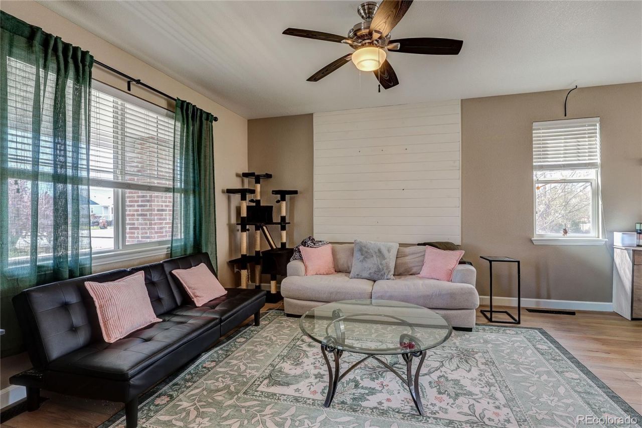 Discover the perfect blend of luxury and convenience in this beautifully updated 4 or 5 bedroom, 4-bath home, ideally situated on a corner lot in a green space cul-de-sac in the desirable Traditions private park section of the neighborhood. With a newer roof, exterior paint, and solar panels, this home offers great curb appeal and efficiency. Inside, youll find custom upgrades throughout, including a gourmet chefs kitchen with quartz countertops double oven and pantry. Updated plank flooring, and an open-concept layout that flows into a warm and inviting living space with a cozy gas fireplace. A/C and ceiling fans provide year-round comfort. The spacious primary suite is a true retreat, featuring a sitting area, luxurious 5-piece bath, and large walk-in closet. The finished basement adds additional living space with a full bath?perfect for guests, a gym, media room, or a non-conforming 5th bedroom. Enjoy outdoor living with covered front and back patios and a great yard. The 3-car tandem garage offers plenty of room for storage and toys. Conveniently located near E-470 with easy access to DIA and Buckley Space Force Base, plus neighborhood amenities including a pool and community center?this home truly has it all!