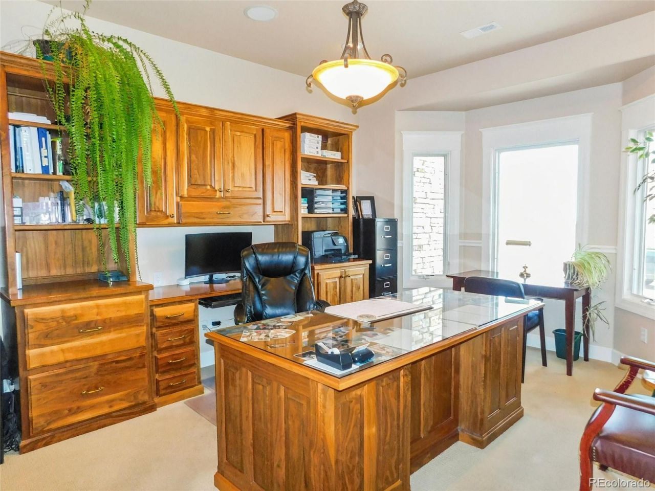 Views that stop you in your tracks ? and a home that keeps getting better. From the moment you pull up, youll feel it: this is something special. Sweeping panoramas of the Spanish Peaks, Greenhorn Mountains, Pikes Peak, and a beach (yes, really ? Stem Beach) set the stage for almost 6,000 finished square feet of custom-built living by Drawing Room. Step through the foyer with marble flooring into a home that truly has it all. The main level flows seamlessly from a formal dining room and private office to a chefs kitchen outfitted with granite countertops, gas cooktop, double ovens, pantry, and custom cherry cabinetry. Main level laundry with two washers and two dryers keeps life running smoothly. The primary suite is a retreat of its own ? a two-way gas fireplace, walk-in closet, and a full five-piece bath with sinks in the bedroom itself. Downstairs, the fun really starts. A library, wet bar, game room, gym with wall-to-wall mirrors, dry sauna, tanning bed, and a dedicated theater room with full projector and sound system. Two additional bedrooms, two bathrooms, and an elegant wine and whiskey bar round it all out. Outside, 40 acres await ? 10?15 fenced with electric fence, 35+ mature trees, a pond with waterfall, and beautiful landscape lighting. The attached 3-car garage has 11.5-foot ceilings; a detached 3-car garage adds workshop and storage space. Southern Colorado living at its finest ? wide open skies, friendly small-town roots, and room to breathe.