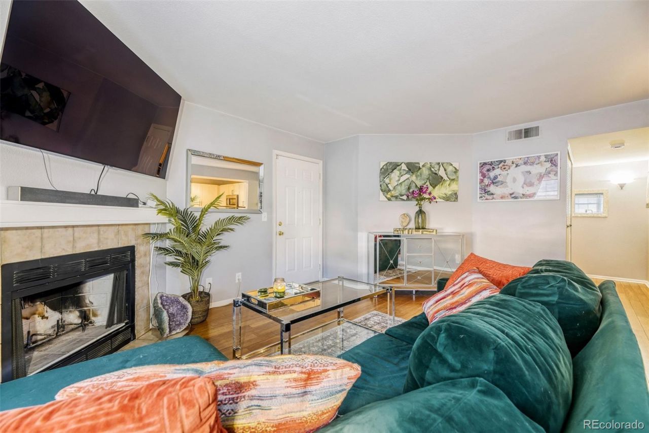 If you are looking for a beautiful property and outstanding value, this one is a MUST see. This home is updated throughout. Its well designed floorplan utilizes all the space efficiently. As you enter into the spacious living room you can view the cozy wood fire place and the lovely bamboo flooring that flows through the entire home. The kitchen is fully upgraded with beautiful quartz countertops, newer appliances and a 2026 dishwasher recently installed. The kitchen is practical and convenient with the eating area located adjacent. The home is located on the east side of the building allowing for privacy and only 6 steps up to your front door. It also has a grassy area near the entrance convenient for those with a furry friend. It is close to Belmar, with easy to downtown or the mountains. Kendrick Lake Park and Gardens, one of Lakewoods premier parks is also nearby. Top location in the complex with pool and BBQ area close by. This home is move-in ready and you can own this beautiful Lakewood home for less than renting. Hurry on this one, call Glen for a private showing.