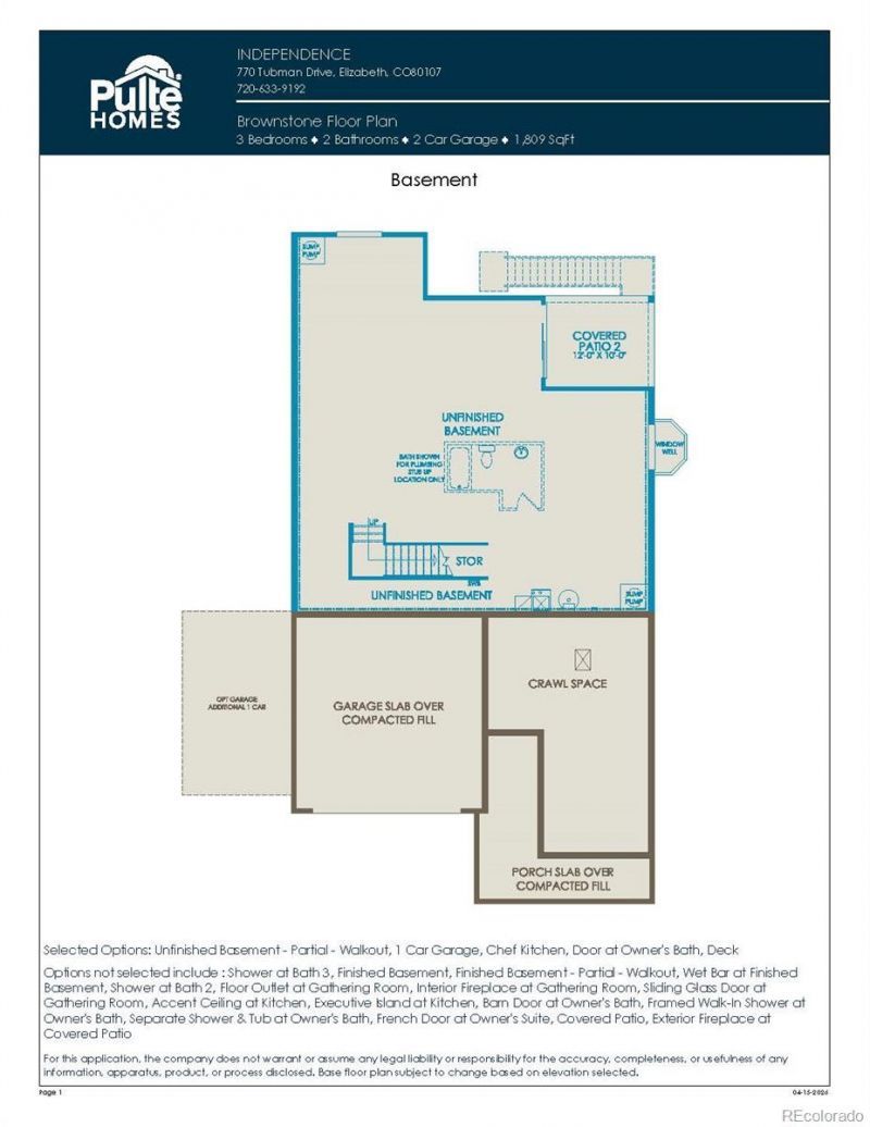 We are proud to present this lovely Pulte Homes ranch style in the beautiful Independence neighborhood! This is a stunning suburban area with ample green space & gentle rolling hills of Elizabeth. The Brownstone plan on this walkout lot offers main floor living at its finest! This NEW BUILD home offers an open floor plan with exceptional finishes throughout. Main level primary bedroom with 2 spacious secondary bedrooms! Gathering Room is pouring with natural light from the east while the Chefs kitchen features beautiful cabinets, Stainless Steel appliances, gas cooktop, and hood. Main floor laundry offers great convenience! Great curb appeal with comfortable 3-car garage and charming front porch. Front landscaping is included. Enjoy a private backyard ready for personalization post-close! Everything is NEW, enjoy our Complete builder home warranty that brings your tremendous peace of mind. Partial unfinished basement offers a large open storage room and ample space for future finish if desired. Live close to shopping, dining, outstanding schools, trails & easy access to Denver/DIA. Community offers a pool, clubhouse, ponds, playground, trails throughout this thriving part of town. Dont miss this amazing home in an amazing community! Call or text 303.324.0885 or email Kristin.congleton@pulte.com to schedule a tour or for more information.