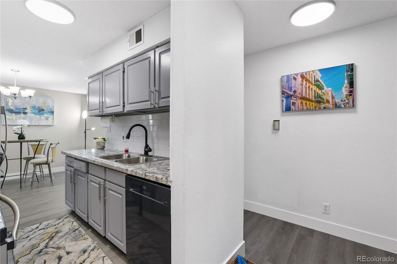 Prime DTC/ Southeast Denver location, just minutes to light rail, I-25, I-225, Eastmoor Park, Rosamond Park, fine dining of Ocean Prime, Shanahans Steakhouse, Park Meadows, and Cherry Creek. New LVP commercial plank floors, new baseboards, new 2-tone paint, and accent walls, new windows, new patio doors, new doors and new door handles, new blinds, new lighting, new closet doors, end unit, high-end stainless steel appliances. All new light fixtures, new outlets, and switches, all refurbished kitchen cabinets with all new hardware, Italian marble countertops, Subway tile backsplash, all new tile in the bathroom, a new toilet, and a newer vanity with marble counters and mirror. Brand new roof installed in November of 2025. Seller is a licensed agent.